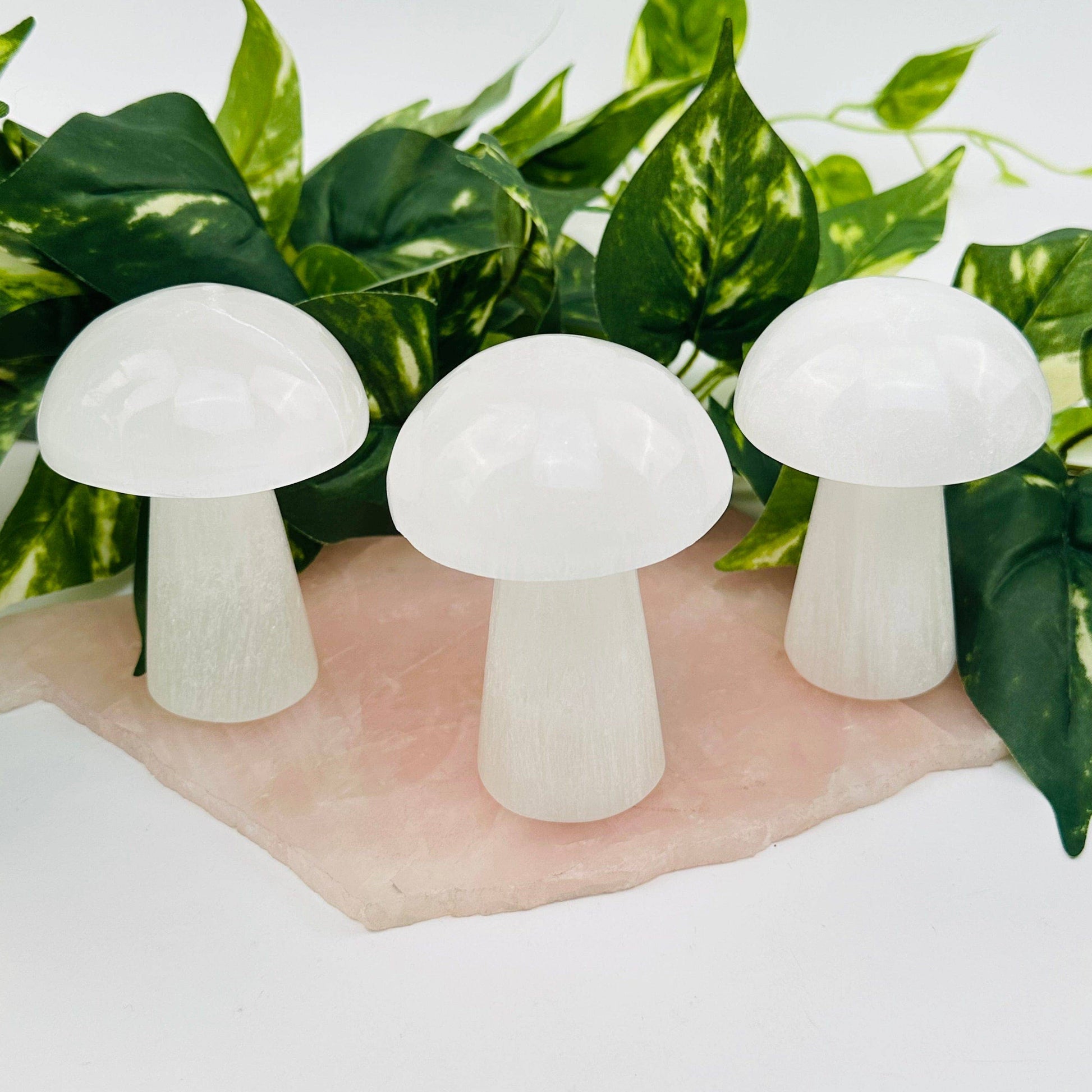 • Whimsical Mushroom Shape: These mushroom shaped selenite sculptures add a whimsical flair to any interior!
